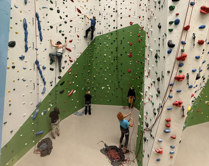 Dieses Mal fand unser Vorstiegskurs in der Kletterhalle Traunrock in Traunreut statt. An drei intensiven Abenden wurden die wichtigsten Inhalte rund um das Vorsteigen vermittelt – vom Clippen über die Sicherungstechnik bis hin zur richtigen Sturztechnik. Natürlich kam auch das Klettern selbst nicht zu kurz: Es wurde geklettert, was das Zeug hält! Am Ende des Kurses konnten sechs neue Kletter*innen erfolgreich ausgebildet werden und sind nun bestens gerüstet für ihre weiteren Kletterabenteuer.