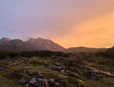 Da der geplante Hüttenanstieg über den Böslsteig wegen des Regens zu gefährlich war, wurde auf den Schrecksattel ausgewichen. Nach 3 Std Aufstiegszeit waren alle froh, sich von den nassen Klamotten zu trennen. Ein Regenbogen und herrliches Abendrot ließen auf gutes Wetter für die kommenden Tage hoffe und den Abend ließ man in geselliger Runde ausklingen. Der zweite Tag versprach optimales Bergwetter. Unserem ausgewählten Ziel, dem Wagendrischlhorn, stand nun nichts mehr im Wege. Der Weg über die Rossgasse führte zum Teil durch eine anspruchsvolle felsige Landschaft direkt auf den Gipfel. Hier wurden wir mit einer klaren Sicht in alle Richtungen belohnt. Im Abstieg wurde der Höhenweg über den Prünzlkopf und dem Schottmalhorn zum Edelweisslahnerkopf gewählt. Dabei konnten wir sogar einen Adler erspähen. Der Rückweg zur Hütte durch das Hochplateau der Reiter Alpe hat sich noch in die Länge gezogen und es war ein langer anstrengender, aber wunderbarer Tag. Am letzten Tag nahmen wir noch die beiden Hausberge der Traunsteiner Hütte in Angriff. Zuerst das Wagendrischlhorn, dann der Große Bruder. Der zweite war eindeutig der schönere Gipfel und wartet mit einem einzigartigen Gipfelkreuz auf. Während der Rast wurde selbstverständlich die Sage von den drei Brüdern vorgelesen, bevor der Rückweg über die Hütte zum Auto angetreten wurde. Bericht u. Bild: Franz Pöschl