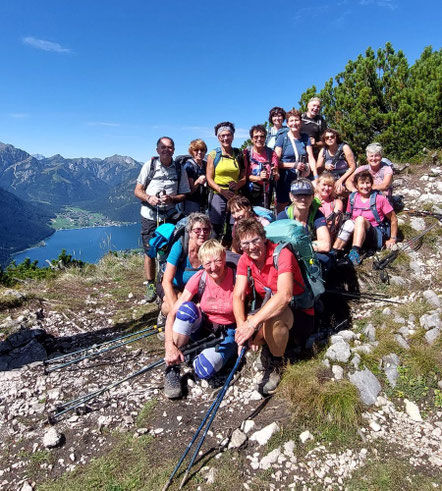 Eine 17-köpfige Wandergruppe unternahm einen 6-tägigen Wanderurlaub. Radfeld ist ein kleiner Ort zwischen Kufstein und Innsbruck gelegen und das Ziel unserer Wanderwoche in Tirol. Bevor wir am Anreisetag unser Quartier bezogen, erwanderten wir die Voldöpper Spitze mit herrlichem Ausblick ins Rofangebirge. Am nächsten Tag stand die 3-Gipfel Tour, Kienberg – Plessenberg – Heuberg, auf dem Programm. Das Ebner Joch, hoch über dem Achensee aufragend, die Gratlspitze, einer der schönsten Aussichtsberge mit grandiosem Blick ins Inntal, sowie eine Wanderung über den Rosskogel zum Zireiner See waren weitere Programmpunkte der Wanderwoche. Am Abreisetag nutzten wir die Wiedersberger Hornbahn für eine gemütliche Bergfahrt. Von der Bergstation wanderten wir auf den Standkopf und zurück über das Wiedersberger Horn zur Dauerstoa Alm, wo wir die Wanderwoche ausklingen ließen. Der Wettergott war uns insgesamt freundlich gestimmt, lediglich an einem Tag begleiteten uns leichte Regenschauer. Bei den täglichen Exkursionen mit jeweils zwischen 800 und 1000 Höhenmetern war durchaus etwas Ausdauer gefragt. Die Abende rundeten mit üppiger und köstlicher Verpflegung und netten Gesprächen bei einem guten Tröpfchen den Tag ab. Am Ende der Woche waren sich die Teilnehmer einig, dass die Woche viel zu schnell vergangen ist. Bericht u. Bild: Margot Ritzinger