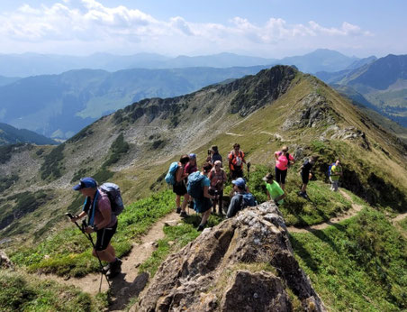 Bei hochsommerlichen Verhältnissen besuchten 33 AV-Senioren die Fleckalm. Diese liegt 1.330 m über dem Meeresspiegel in der Nähe von Kirchberg bei Kitzbühel. Der Busfahrer konnte bergauf und bergab auf der einspurigen Fahrbahn mit mehreren Kehren seine Fahrkünste unter Beweis stellen, einen Abschnitt musste er rückwärtsfahrend meistern. Die im Sommer bei den Bergradlern, im Winter bei den Pistenfreaks beliebte Region ist auch zum Bergwandern interessant. Obwohl man die Trails der Radler nicht begeht, heißt es aufpassen, damit man den flott bergabfahrenden Bikern rechtzeitig ausweicht. Eine Gruppe erwanderte eine zum Verweilen einladende Erhebung oberhalb der Ochsalm (1.559 m). Die „Gipfelstürmer“ zog es hinauf auf die Ehrenbachhöhe (1.800 m), wo viele Bergbahnen zusammentreffen und ein See zur Beschneiung ein wenig für die Freizeit geeignet ist. Es bot sich eine tolle Gipfelschau, so z.B. auf die Südseite des Wilden Kaisers und im Westen zum Großen Rettenstein. Unter Anderem blühte der Almenrausch. Am Ende erfreuten sich durstige Wanderer über die Verpflegung der Alm. Bericht u. Bild: Robert Hesse