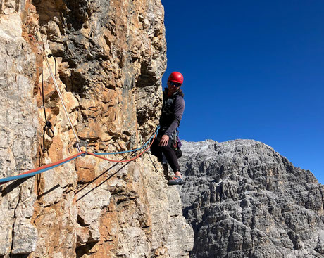 Wir sind unbelehrbar - deshalb fuhren wir, wie schon die letzten Jahre, zu einer Zeit in die Dolomiten, zu der das sonst keine Kletterer*innen tun. Die Vorteile: Einsamkeit in der Wand, kein Parkplatzproblem und immer ein freier Tisch in der Pizzeria. Die Nachteile: Kälte, Wind und Schnee.