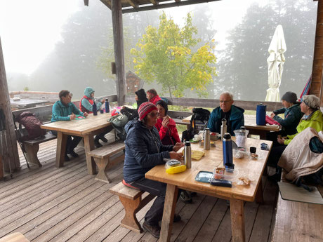 Wie schon so oft in diesem Jahr starteten die Wanderer der Donnerstagsgruppe im auch diesmal mit nicht so guten Wetterprognosen zu Ihrer Tour. Von Hammerstiel bei Schönau am Königsee führte der Weg über einen wurzeligen Pfad zur Grünsteinhütte. Bereits hier hatte sich der Nebel über die Landschaft gelegt. Weiter ging es auf dem Kamm entlang und nur manchmal erhaschte man einen Blick tief hinunter auf den Königsee. Die Kührointhütte hatte leider geschlossen, aber die Teilnehmer hatten warme Getränke und Brotzeit im Rucksack und Sitzgelegenheit war genügend vorhanden. Über Steige und teilweise die Zufahrtsstraße zur Kühroint ging es dann zurück zum Parkplatz Hammerstiel. Bericht u. Bild: Gina Heinrich