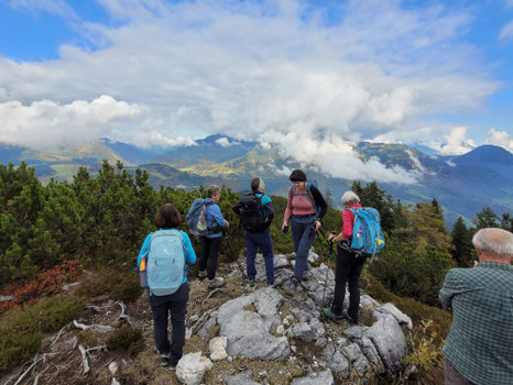 Der Herbst zeigte sich in seinen schönsten Farben - nur die Sonne versteckte sich im Hochnebel, als sich die Donnerstagswanderer des Alpenvereins Trostberg auf den Weg nach Unken im Land Salzburg machten. Das Dietrichshorn war diesmal Ziel der Wanderung. Vom Wanderparkplatz Unkenberg ging es erst auf einer Forststraße bergauf, bald aber schon zweigte ein Steig ab und dann ging es über Wurzeln und Steine in steilen Serpentinen zum Gipfel. Das Dietrichshorn, im Volksmund auch Unkener Hörndl oder Albhorn genannt ragt frei aus dem Unkenberg heraus und so war eine wunderbare 360 Grad Rundumsicht trotz Wolkenhimmel möglich. Nur die schon recht kühle Herbstluft ließ die Wanderer dann wieder aufbrechen und am leichten Klettersteig ging es hinunter auf den Forstweg und auf diesem dann ins Tal.