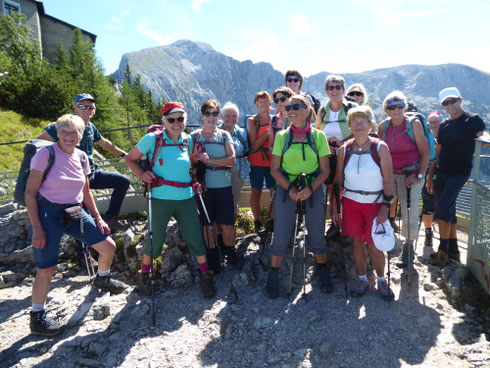 Vom Parkplatz Hinterbrand machte sich unsere Wandergruppe auf den Weg in Richtung Schneibstein. Der Wetterbericht meldete erst für den späten Nachmittag Regen, von daher überraschte uns der erste Regenschauer kurz vor dem Stahlhaus. Nach einer kurzen Kaffeepause im Stahlhaus beruhigte sich das Wetter und wir konnten den Gipfelanstieg auf den Schneibstein in Angriff nehmen. Am Gipfelplateau angekommen hatte man eine atemberaubende Aussicht auf das karge Hagengebirge, auf die unberührte Weite des Steinernen Meeres und auf die berühmt berüchtigte Watzmann Ostwand. Weiter ging es über zahlreiche Almwiesen, die in voller Blüte standen, vorbei am Seeleinsee. Der Abstieg führte durch den Stiergraben zur Priesbergalm. Auf dem Rückweg zum Parkplatz überraschte uns noch einmal ein heftiger Regenschauer, den wir gut geschützt bei der Grassl Enzianhütte abwarten konnten. Am Ende der Tour waren ca. 20 km Wegstrecke und 1300 Höhenmeter absolviert. Bericht u. Bild: Margot Ritzinger