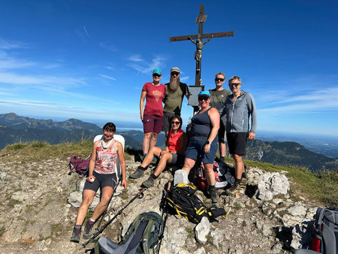 Eigentlich hätte die diesjährige Hüttentour ins Lechquellgebirge führen sollen. Doch die Wetterprognosen machten den Bergfreunden einen Strich durch die Rechnung: Regen und unsichere Bedingungen ließen die Tourenleitung in Absprache mit den Teilnehmern entscheiden, den geplanten Ausflug zu verschieben. Da für das Voralpenland deutlich bessere Bedingungen vorhergesagt waren, fand sich rasch eine Alternative. Ein Teil der Gruppe sattelte kurzerhand um und machte sich mit bester Laune und schwerem Gepäck auf den Weg zur Trostberger Hütte. Nach dem ersten Aufstieg wurden dort die Rucksäcke erleichtert, bevor es bei strahlendem Sonnenschein weiter auf den Kühstein ging. Oben angekommen, genoss die Gruppe den herrlichen Ausblick und die Freude über den gelungenen Tag. Zum Abendessen kehrten die Wanderer beim Schrempf auf der Hochalm ein, auf der Hütte ließen sie den Tag gesellig ausklingen. Frühmorgens startete bereits der erste Trupp, um den Sonnenaufgang am Peitingköpfl zu erleben. Nach einem kräftigenden Frühstück brachen dann alle gemeinsam zum Sonntagshorn auf. Ein Teil der Gruppe nutzte die Gelegenheit, zusätzlich noch zum Wetterkreuz zu wandern. Am Abend wurde gemeinsam gekocht, und auch der zweite Tag fand in fröhlicher Runde seinen Abschluss. Trotz der Verschiebung war die spontane Ausweich-Tour ein voller Erfolg – mit vielen schönen Eindrücken, Gemeinschaftssinn und dem sicheren Gefühl, das Beste aus der Situation gemacht zu haben.
