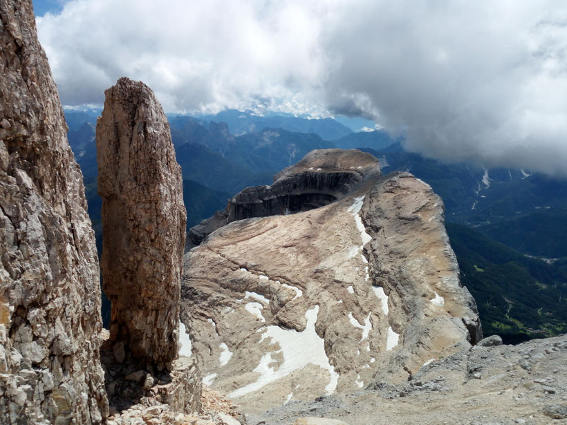 Die Kälteerprobtheit der Gruppe bewies sich schon am ersten Tag, als wir nach der Anfahrt etwas zu spät dran waren, um an der Pompena die Basso Südostwand noch Sonne abzubekommen. Doch davon ließen wir uns nicht abschrecken. Am Tag darauf kletterten wir am ersten und zweiten Tofanapfeiler lange Touren in der Sonne. Am zweiten Pfeiler windgeschützt, um nicht zu sagen warm, am ersten Pfeiler mit fies kaltem Wind. Gemeinsam hatten beide Touren den nordseitigen Abstieg im Schnee. Den dritten Tag ließen wir gemütlicher angehen. An der Südwestwand des Averau waren wir dennoch etwas zu früh - nicht wegen dem Sonnenstand, sondern wegen der Wolken. In den letzten zwei Längen konnten wir aber die Handschuhe ausziehen und quasi beste Kletterconditions genießen. Nachdem es in der Nacht auf Sonntag bis weit hinunter geschneit hatte, beschlossen wir, auf das Frieren zu verzichten und auf dem Heimweg die Dolomiten bzw. Südtirol nur noch von seiner kulinarisch besten Seite zu genießen. Wir kommen wieder, auch im Herbst ;)